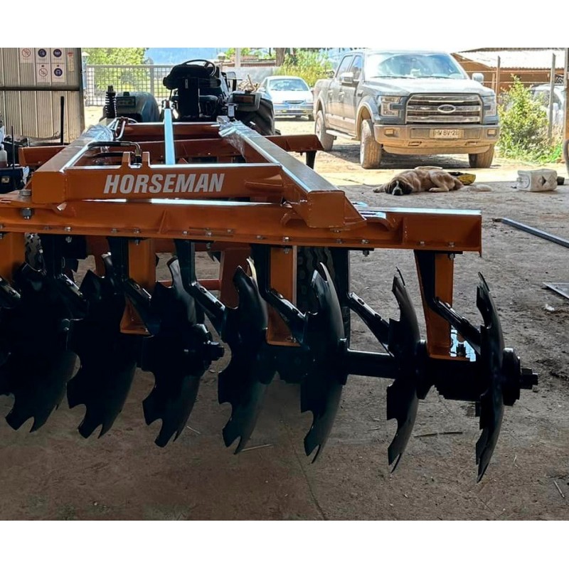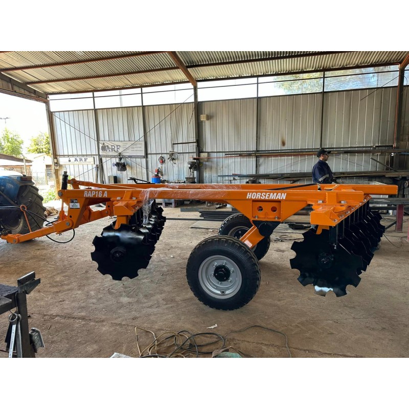 Rastra de tiro hidráulica de 1,7 metros con 16 discos de 24″ dentados para tractores de 65 a 75HP.